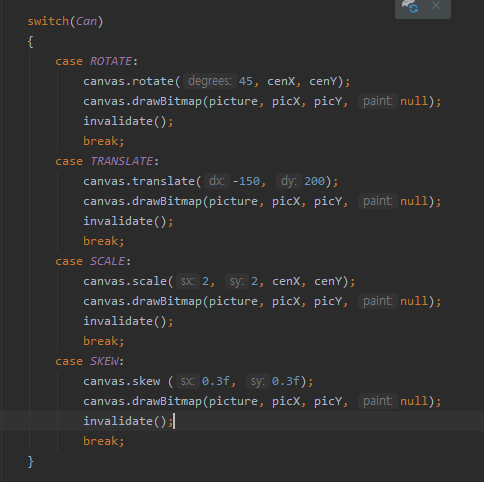 invalidate 를 각각 버튼을 위한 스위치 문에 호출한 결과,